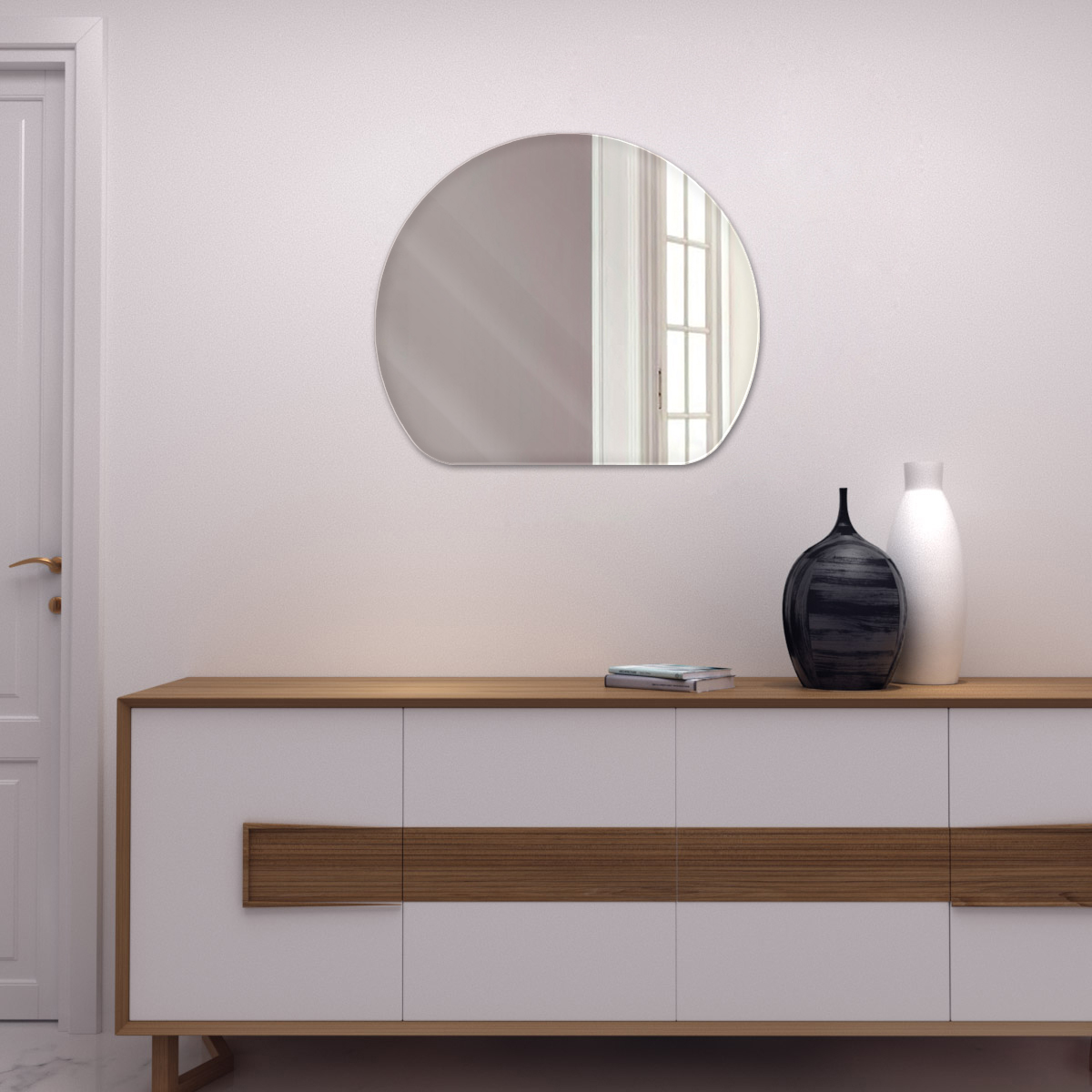 Фигурное зеркало "Восход" с красивым округлым силуэтом. Интерьер ванной комнаты или спальни можно с легкостью украсить таким элегантным зеркалом необычной формы. Зеркало "Восход", с полированной кромкой по краю, идеально впишется в любое помещение, в интерьере которого присутствуют плавные изгибы и округлые формы, а также будет уместно и стильно смотреться в классических интерьерах.