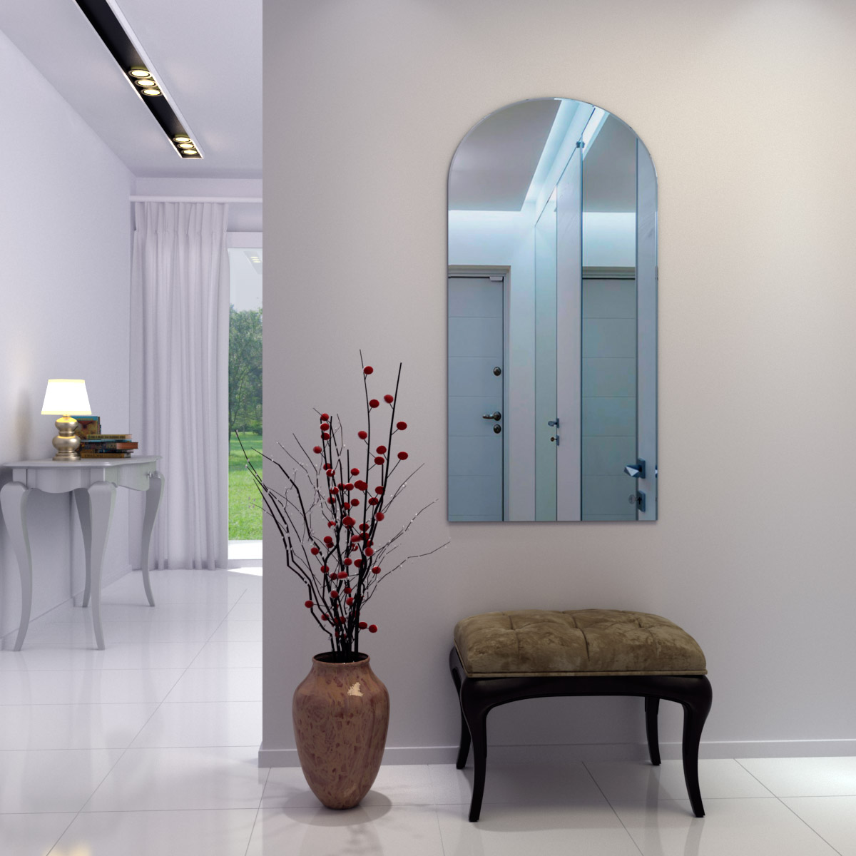 Элегантное классическое арочное зеркало "Триумф". Опытные  дизайнеры знают: если хочется внести в интерьер особенную ноту , то одно из лучших решений  дополнить его арочным зеркалом. Такое зеркало уместно подчеркнет и классический стиль, и этнические мотивы, и популярный сегодня винтаж. Зеркало "Триумф" с полированной кромкой по краю, идеально впишется в любой из представленных интерьеров.