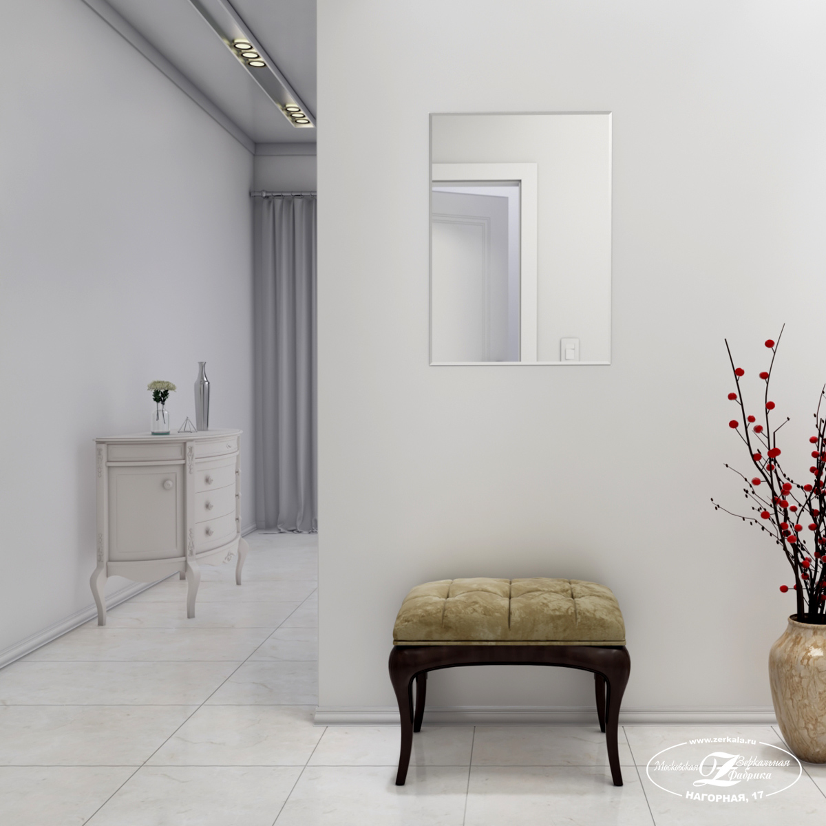 Стоимость зеркала рассчитывается исходя из необходимой вам комплектации. Минимальная цена данной модели составляет 7 082 ₽.