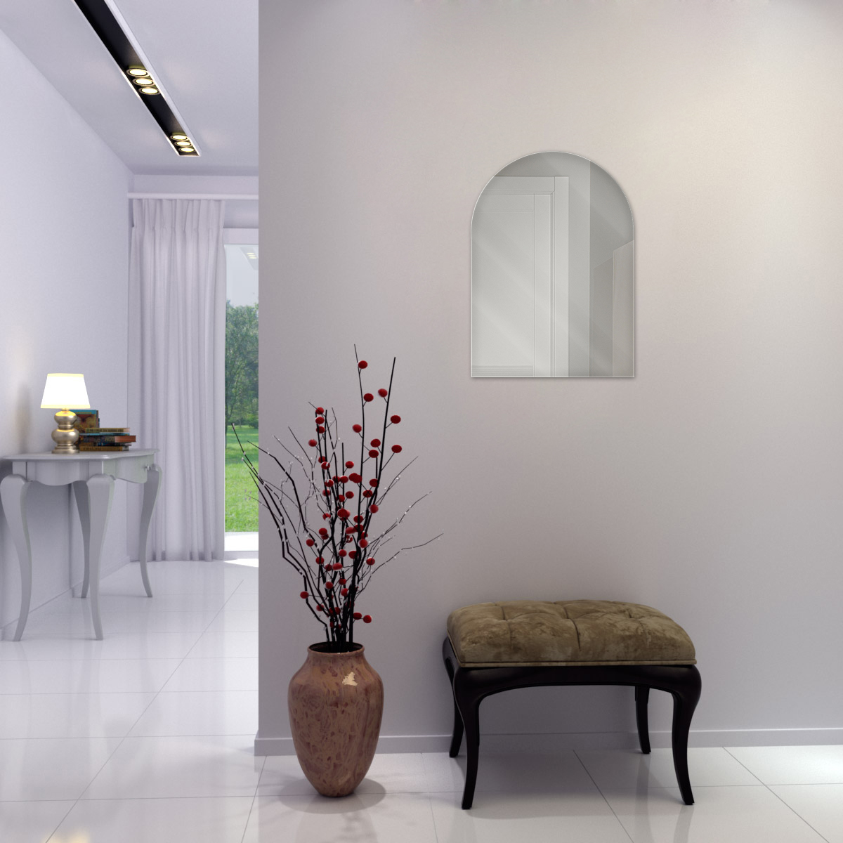 Элегантное классическое арочное зеркало "Триумф". Опытные  дизайнеры знают: если хочется внести в интерьер особенную ноту , то одно из лучших решений  дополнить его арочным зеркалом. Такое зеркало уместно подчеркнет и классический стиль, и этнические мотивы, и популярный сегодня винтаж. Зеркало "Триумф" с полированной кромкой по краю, идеально впишется в любой из представленных интерьеров.