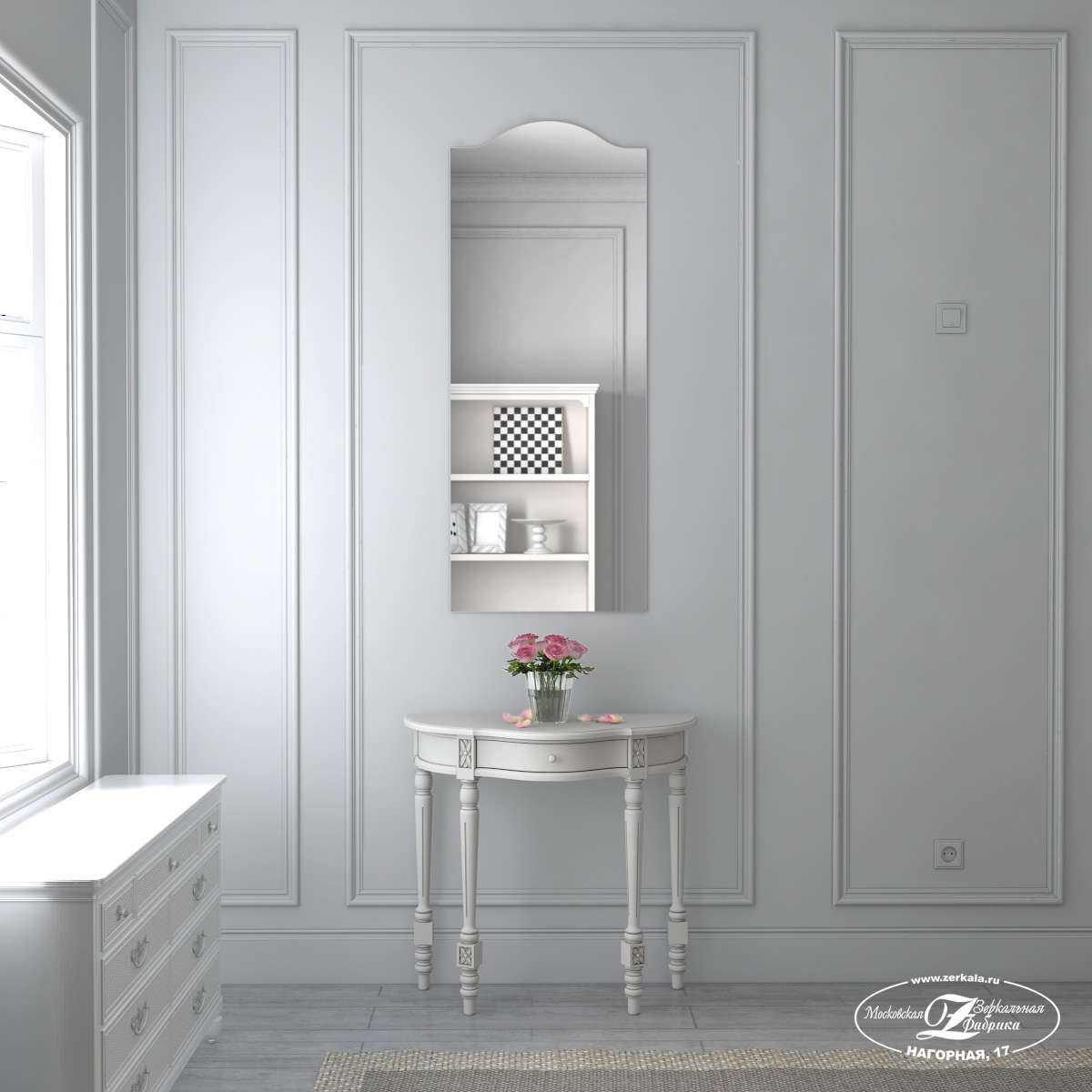 Стоимость зеркала рассчитывается исходя из необходимой вам комплектации. Минимальная цена данной модели составляет 8 204 ₽.