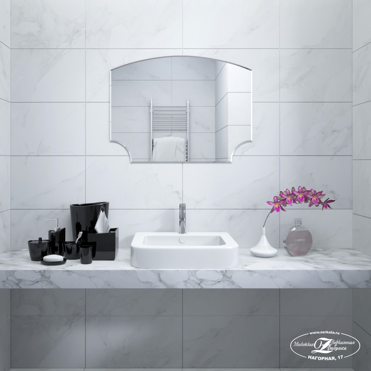 Стоимость зеркала рассчитывается исходя из необходимой вам комплектации. Минимальная цена данной модели составляет 6 429 ₽.